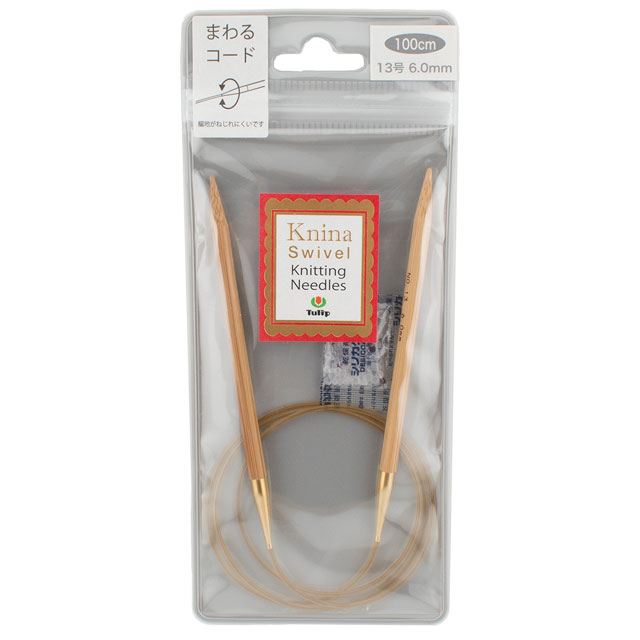 コードがくるくる回転するため、編んでいてねじれない、竹製の輪針です。