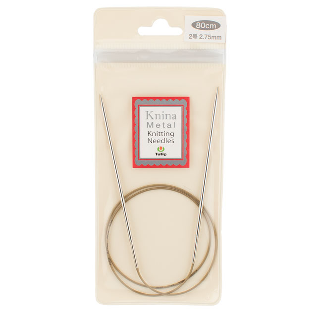 靴下編みや棒針で編むレース模様に最適な、針が金属製の輪針です。