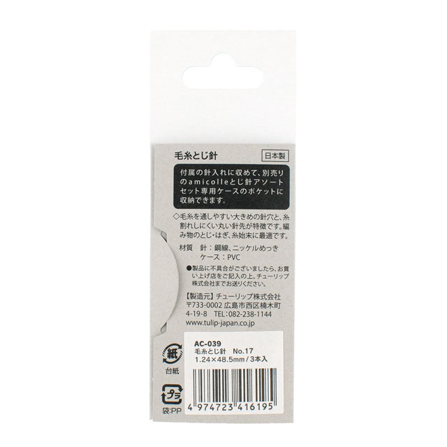 毛糸を通しやすい大きめの針穴と、糸割れしにくい丸い針先が特徴です。