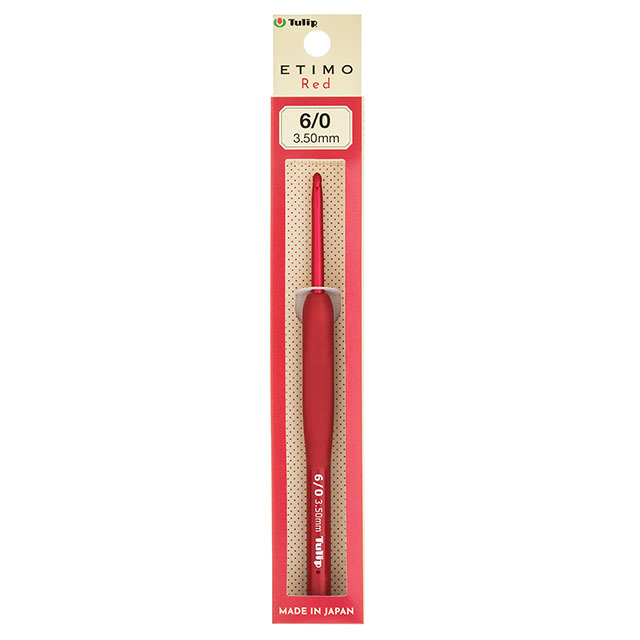 明かりの下でも反射せず、目にやさしいマットな赤色のかぎ針。