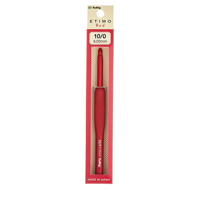 明かりの下でも反射せず、目にやさしいマットな赤色のかぎ針。