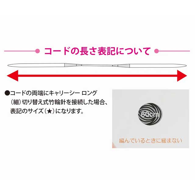 ※キャリーシー 切り替え式竹輪針 細サイズ(CCJA-73~76)と接続可能ですが、全長はコードの表記サイズより5cm短くなります。