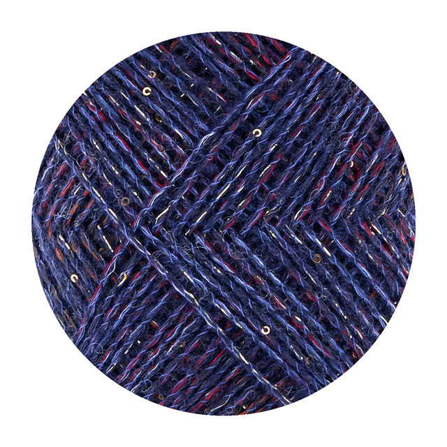 小さなスパンコールの輝きと、穏やかなニュアンスのグラデーションが織りなす、上品な表情のファンシーヤーンです。