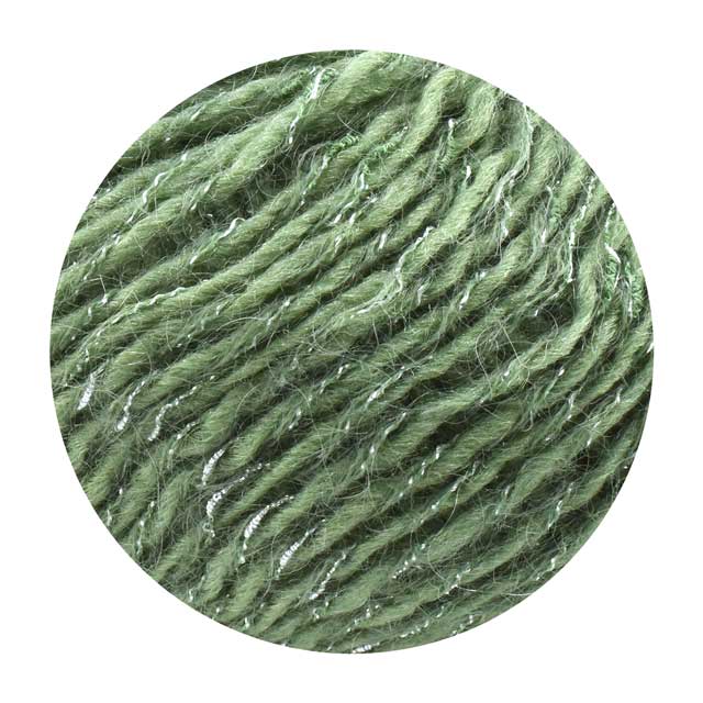 光沢ナイロン混のウールに、ラメと色糸で作った小さなノットヤーンをモヘヤと共に撚りあわせました。