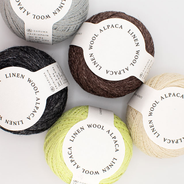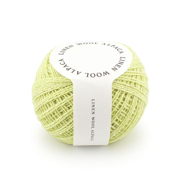 リネンはさらっとした肌触りを、ウールは膨らみとコシ感を、アルパカは滑らかさと編地の柔らかさをもたらします。