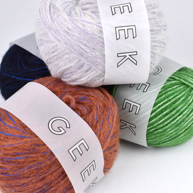 糸の芯と吹き出ているウールの繊維の色を変えたユニークな毛糸。