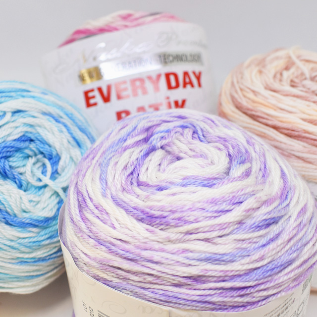 エブリデイシリーズのエブリデイソリッドと同じ太さの新しいタイプの段染め糸です。