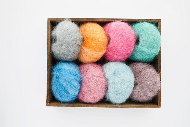 芯の部分にシルクを使ったモヘアの手編み糸で、滑らかで柔らかく、編み地になると上品な光沢が出るのが特徴です。