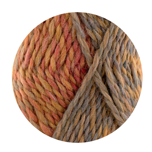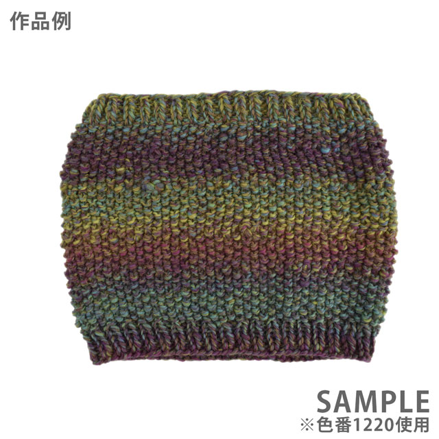 ロングピッチで色の変化が楽しめる、柔らかな手触りと滑らかな質感が魅力の超極太糸