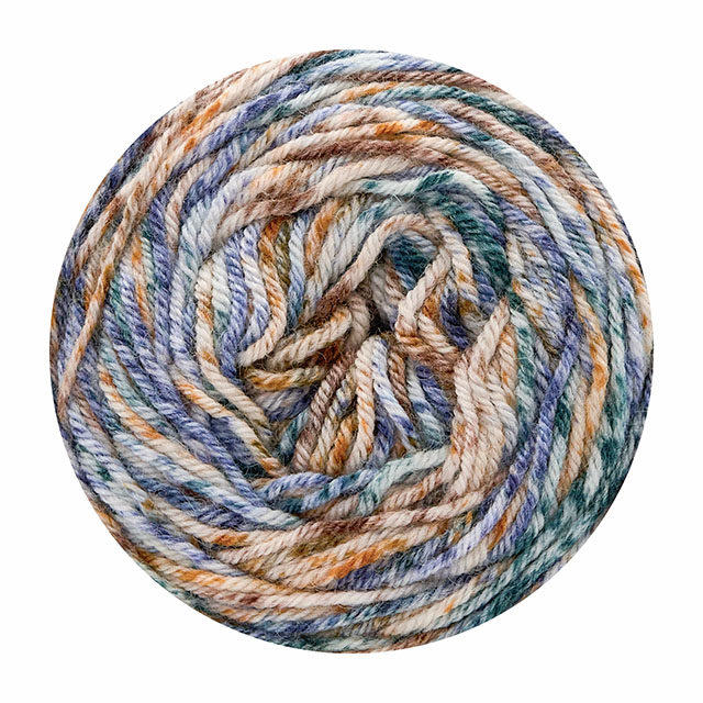 暖かいメリノウールと、強度と柔軟性のあるポリアミドをブレンドした個性的なプリント柄のソックヤーンです。