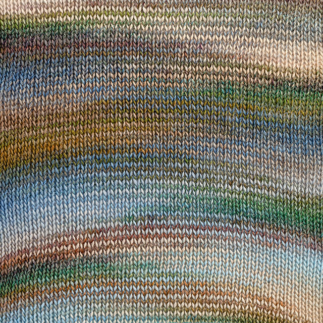 ゆっくりと移り変わる色の変化が美しく、どんどん編み進めたくなります。