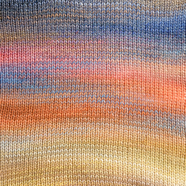 ゆっくりと移り変わる色の変化が美しく、どんどん編み進めたくなります。