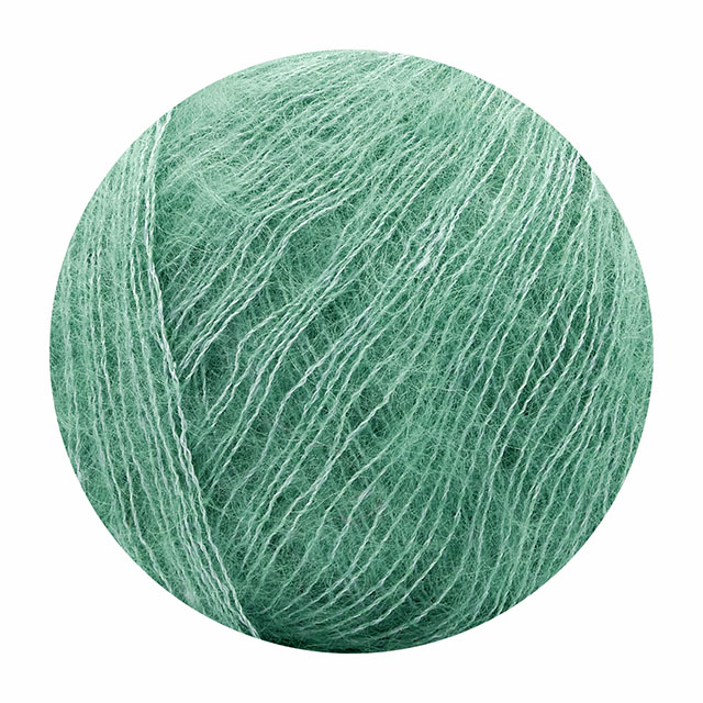 暖かく、薄くて軽い作品を編むのにぴったりなモヘアとシルクの混紡糸。