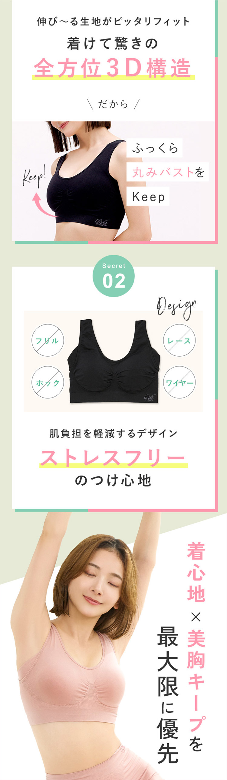 ノンワイヤーで着心地ふんわり。