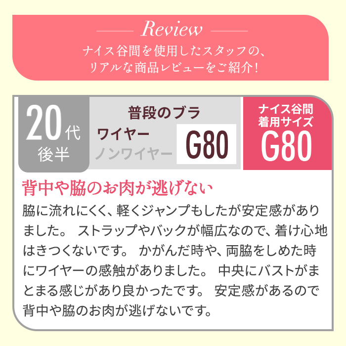 柔らかくなり離れてしまったバストを、本来あるべき正しい位置に補正して美胸をメイクする「ナイス谷間ブラ」