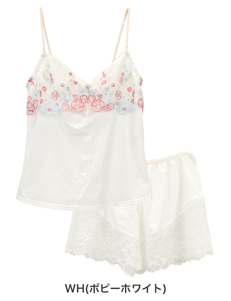 ブラとお揃いのデザインのキャミソールとストレッチレースをふんだんにあしらったタップパンツのセット。