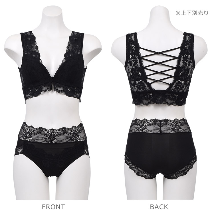 ストラップまでつながったレースはバストをすっきりと整えて引き上げます。