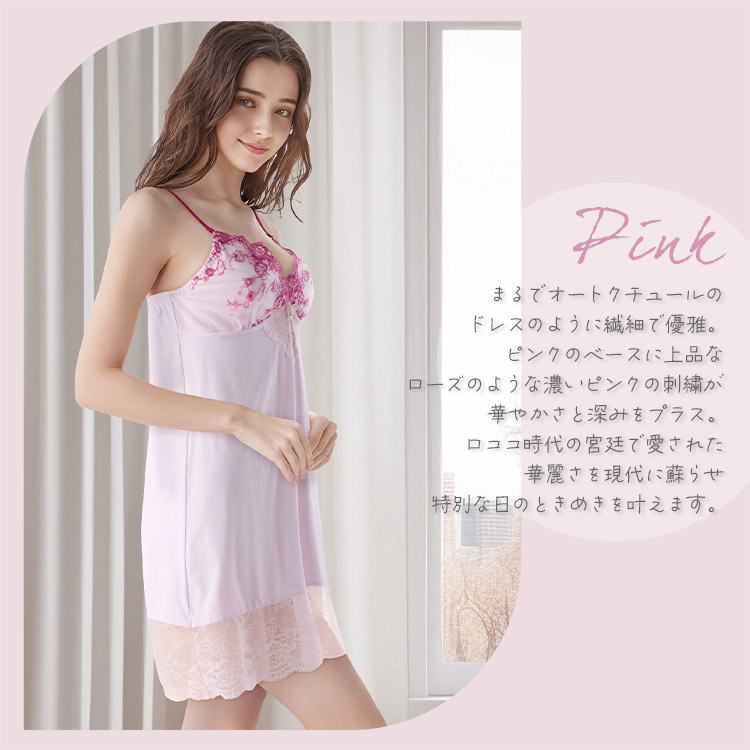 刺繍レースとリンクした配色ストラップがアクセントとなり、全体の華やかさを引き立てます。