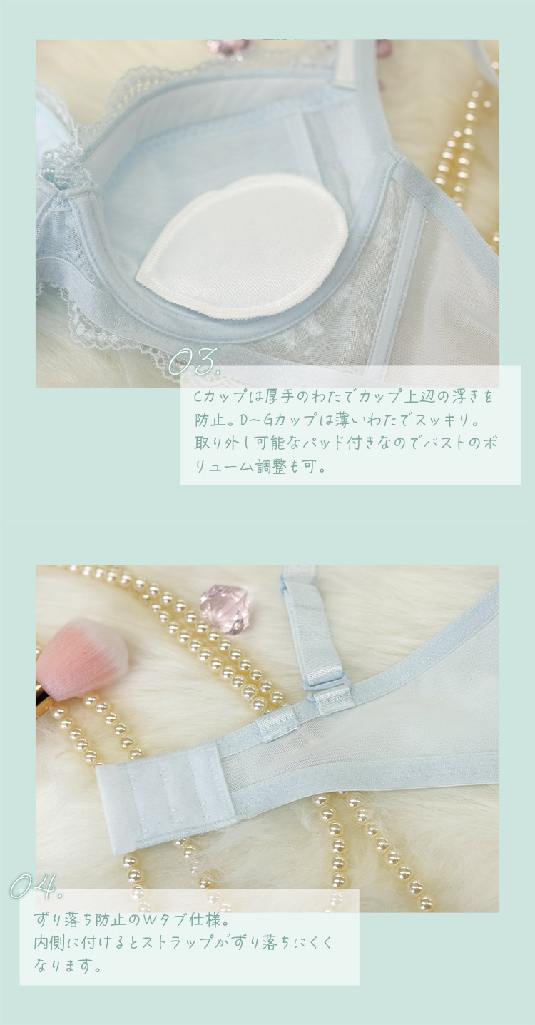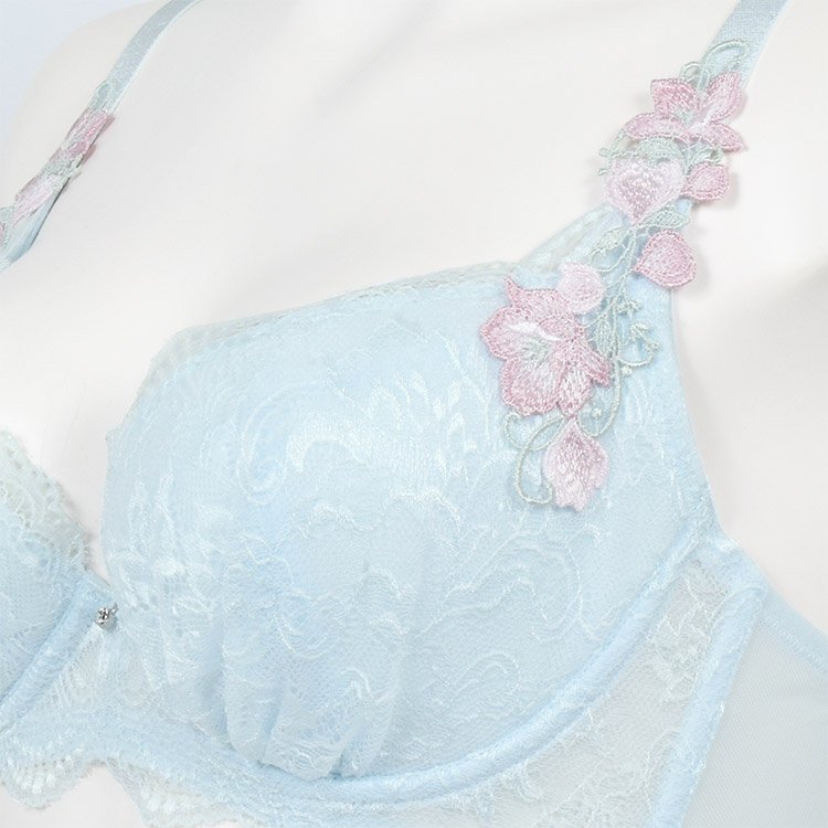 カップ表と土台部分には軽やかな日本製レースを使用。