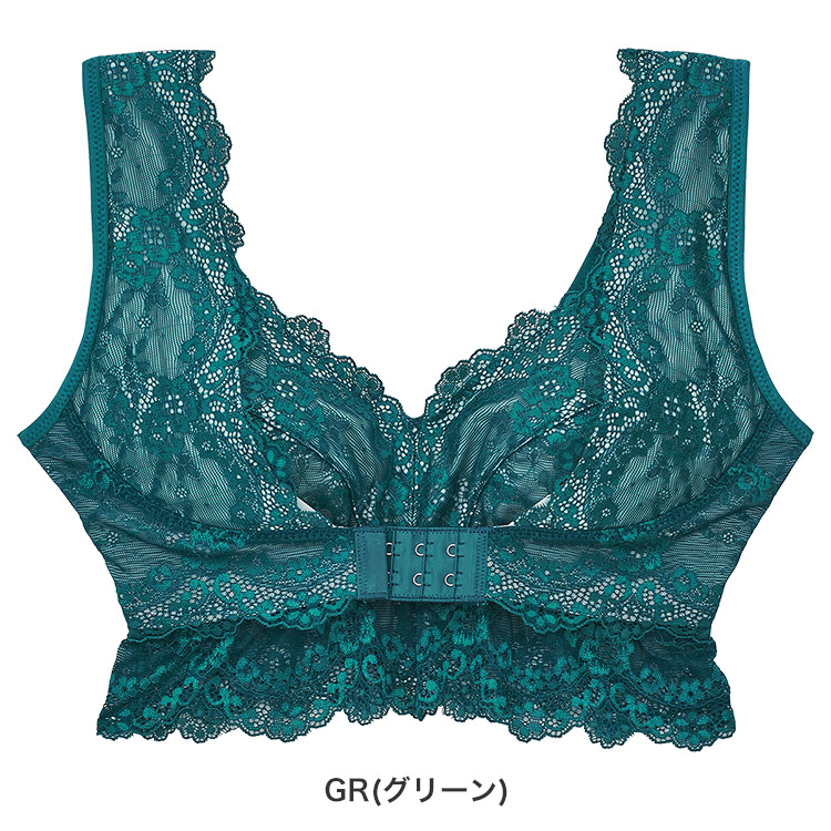 楽な着け心地ながら、脇高設計で安心のホールド感。フロントホックの仕様で、バストを内側に寄せます。