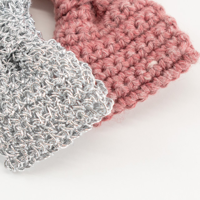 Daily キャトル/40g巻 色番3.ローズピンク使用量:メタリックプレイコード./70g巻ド 色番101.シルバー使用量: