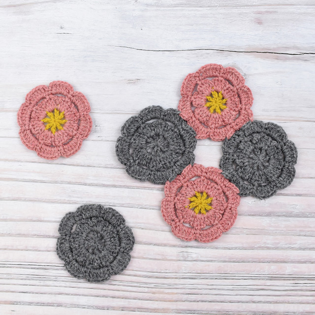1枚でも、つなげてもかわいいお花のモチーフ。くさり編み、細編み、長編み、3つの編み方でお花を編んでいきます。それぞれの編み目の大きさを揃えることできれいなお花の形になりますよ。