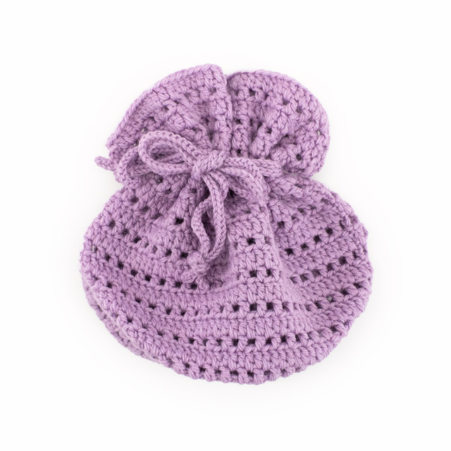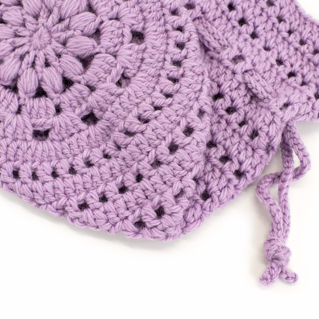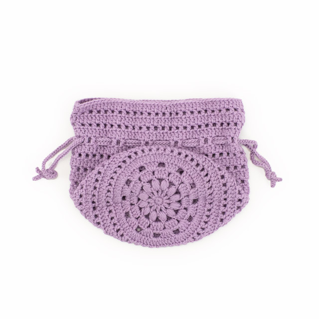 ころんとしたかぎ針編みのミニきんちゃく。ハンドクリームやスプレーボトルなど、バッグの中で迷子になりがちなアイテムの収納にぴったり!立体感のある巾着袋なので、ぬいぐるみや推しの”ぬい”を入れても!底にパプコーン編みをして花びらのように見せているのもかわいいポイント。側面は基本的な長編みとくさり編みの繰り返しなので、かぎ針はじめてさんにもおすすめです。