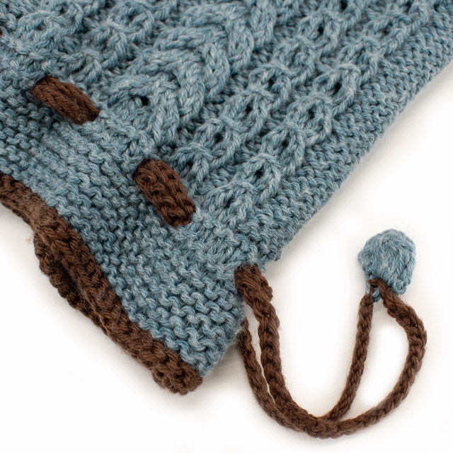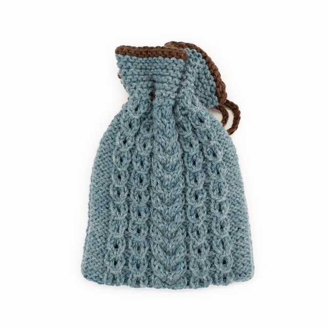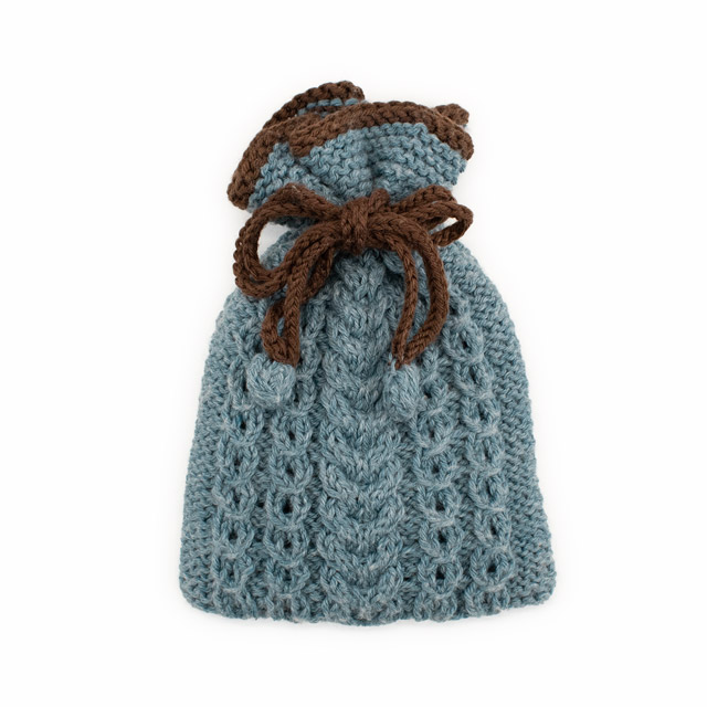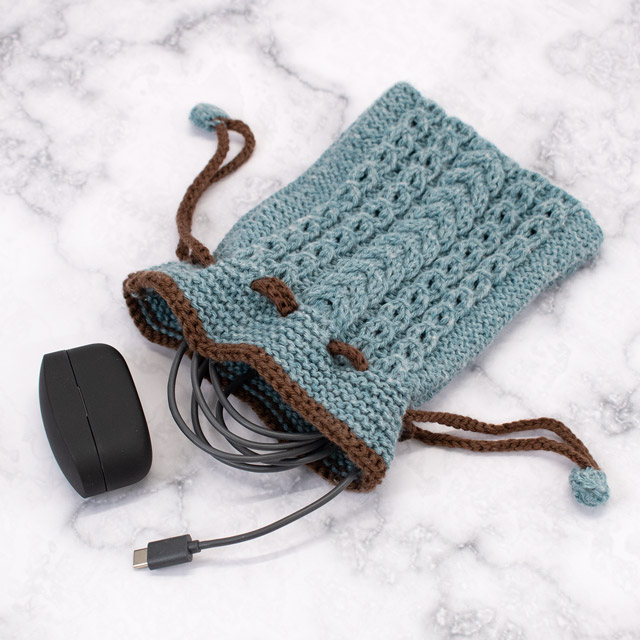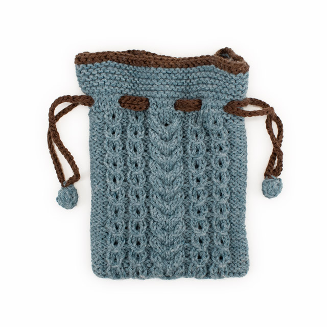 別カラーの縁とひもがアクセントになったミニ巾着。ケーブル模様も温かみのある雰囲気です。2玉で色違いの巾着が2つ編めるので、プレゼントにも!(※注)ぜひお好きな色の組み合わせで作ってみてください。小物なので、なわ編みにチャレンジしたい方にもおすすめです。(※注)編み方には個人差があるため、緩めに編んだ場合は糸が不足する場合もあります。いつも緩めに編みあがる方は、編み針の号数を1~2号小さくするなど調整すると良いでしょう。