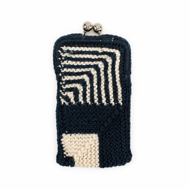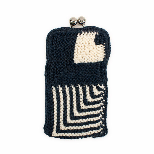 アクセサリーや、ヘアクリップ、コームなど細々とした小さな物を入れるのに便利ながま口ケース。ドミノ編みの幾何学パターンが施されたモダンなデザインと、温かみのある風合いが魅力です。ガーター編み(棒針)を中心で減目をし、色を変えることによってできるドミノ編み。複雑そうに見えて、意外と簡単に形になっていきます。編みつける口金を使用しているので、取り付けはかぎ針で仕上げていきます。編み図は2サイズ記載されているので、お好きなサイズとカラーで編んでみてくださいね。