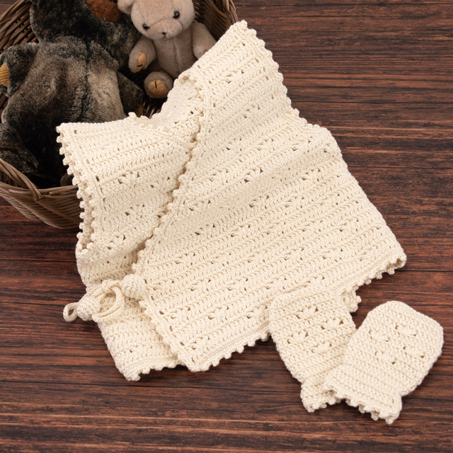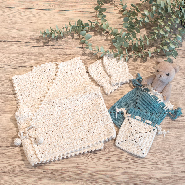 ベビー胴着とおそろいのお花模様のミトン。赤ちゃんの手に合わせた小さなサイズ感がかわいいです。ベビー胴着とミトンのセットで贈り物にも!手首には細いゴムを入れて、手が抜けにくくしています。