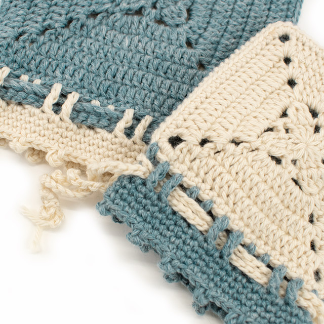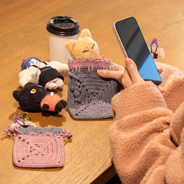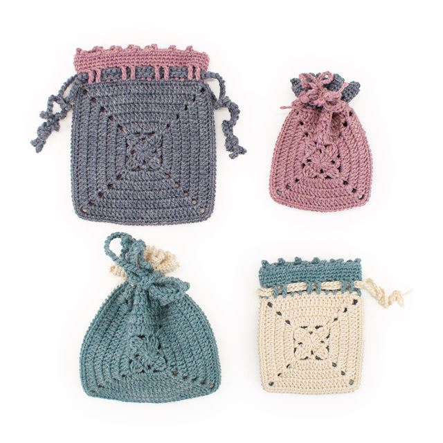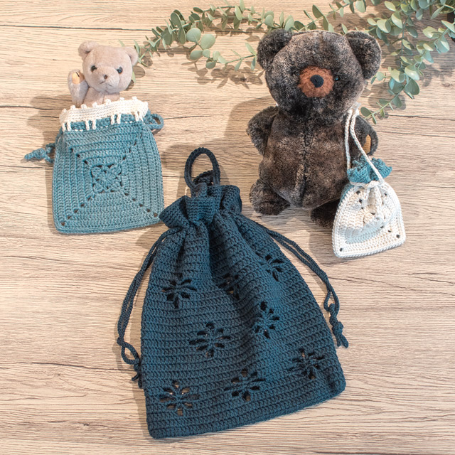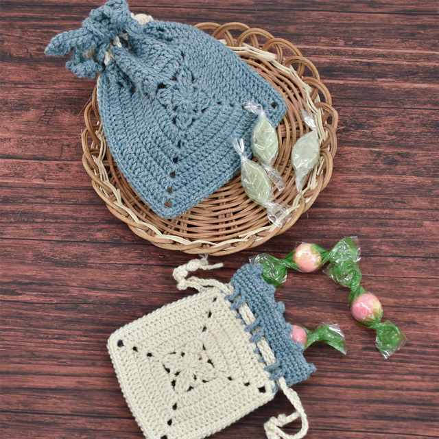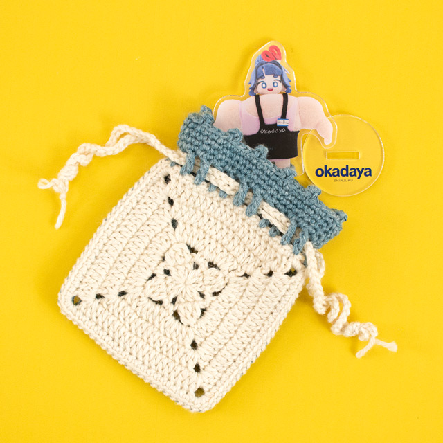 モチーフを2枚編んで仕立てた小さな巾着です。飴やメイクアイテムなどはもちろん、大切なアクスタやアクキー、缶バッジなどを入れて持ち歩いても!ほとんどが長編みの簡単なデザインのモチーフなので、はじめてモチーフ編みをする方にもおすすめです。編み図には2サイズ記載されているので、お好きなサイズとカラーで編んでみてくださいね。※Daily キャトル/40g巻 A色・B色、各1玉ずつで大小両方編めます。