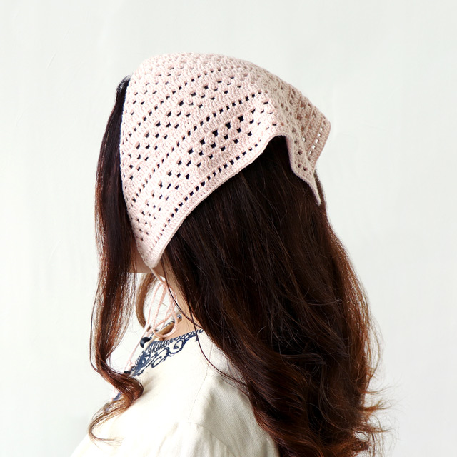 くたっとやわらかなシルエットが、ナチュラルな装いにすっとなじむバブーシュカです。透かし模様の軽やかさと、淡いピンクの優しさで、甘すぎないガーリーさをプラス。初心者さんでもチャレンジしやすいかぎ針編み作品です。お洗濯できるウールコットン混の毛糸でいつでも清潔に。1玉で編めるので、色違いで作るのもおすすめです。