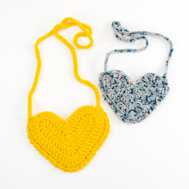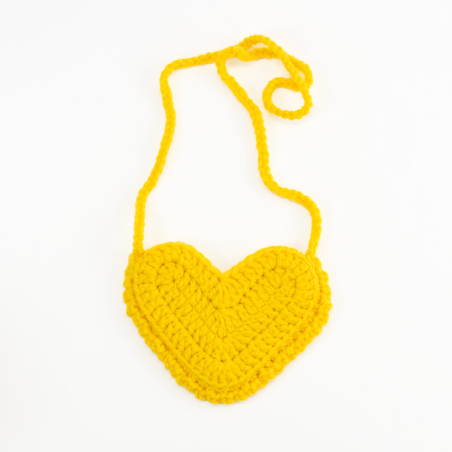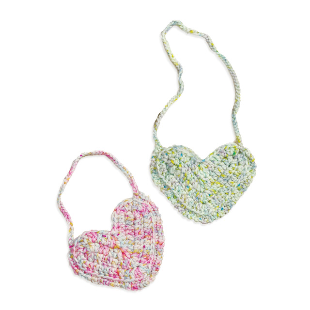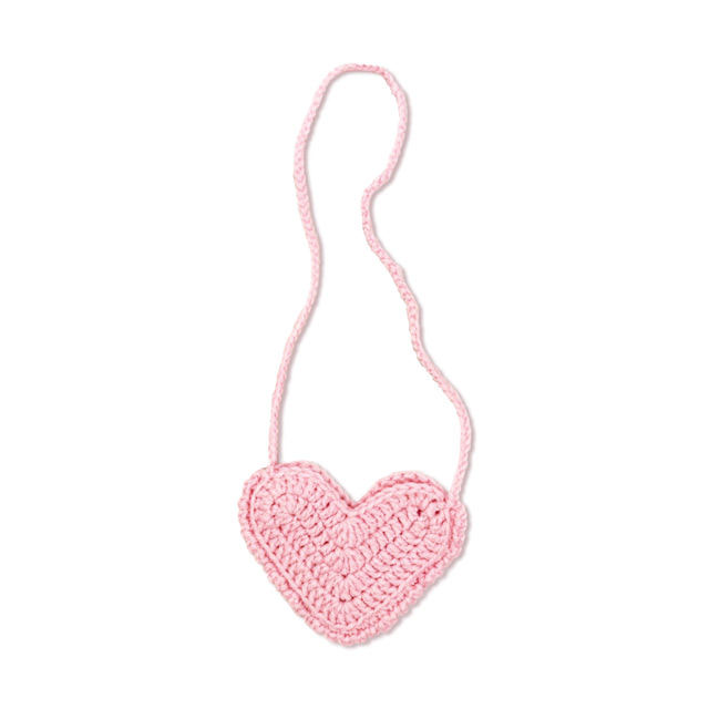 お気に入りのアイテムを入れたくなるハートのかわいいポシェット。推し色でつくって推し活をさらに楽しむのもおすすめです!指定糸のパルで編むと大きめに、イレギュラーな点プリントがかわいいロトンで編み変えると少し小さめに仕上がります。