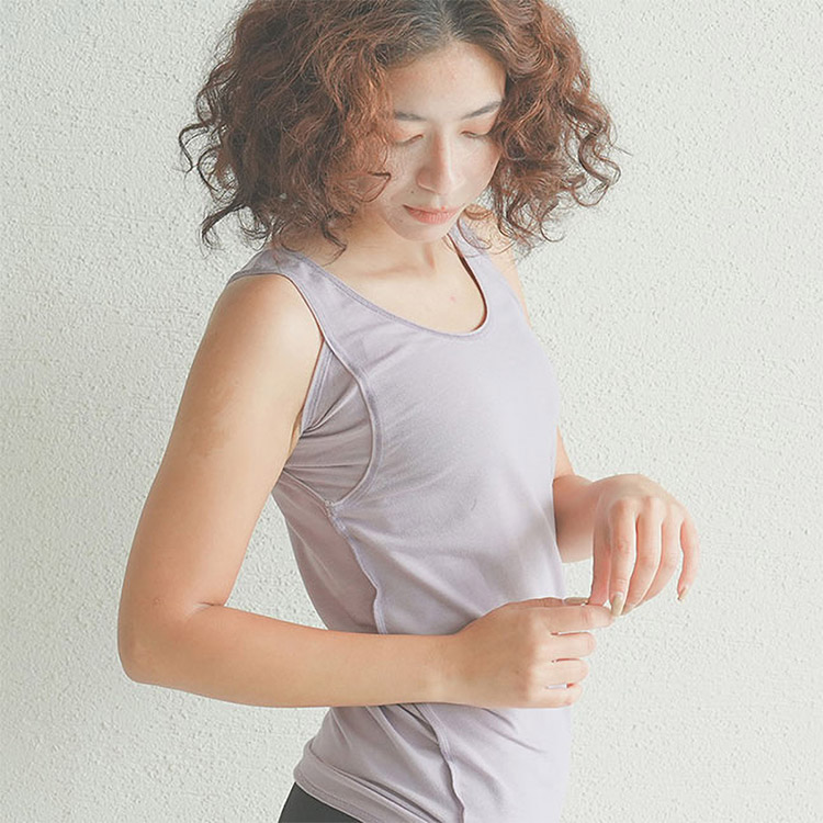 汗取りパットが付いた、オールシーズンに使えるタンクトップ。