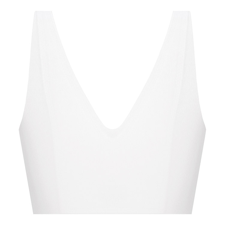 オーガニックコットン 55% 生地を使用したナチュラルな風合いの無縫製ハーフトップブラです。