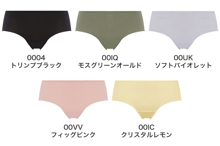 0004 トリンプブラック、00IQ モスグリーンオールド、00UK ソフトバイオレット、00VV フィッグピンク、00IC クリスタルレモン