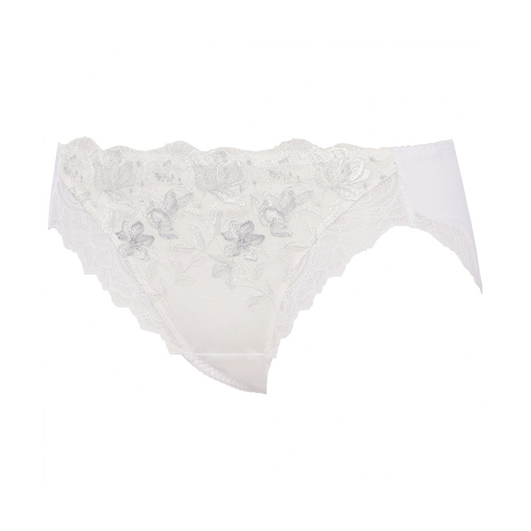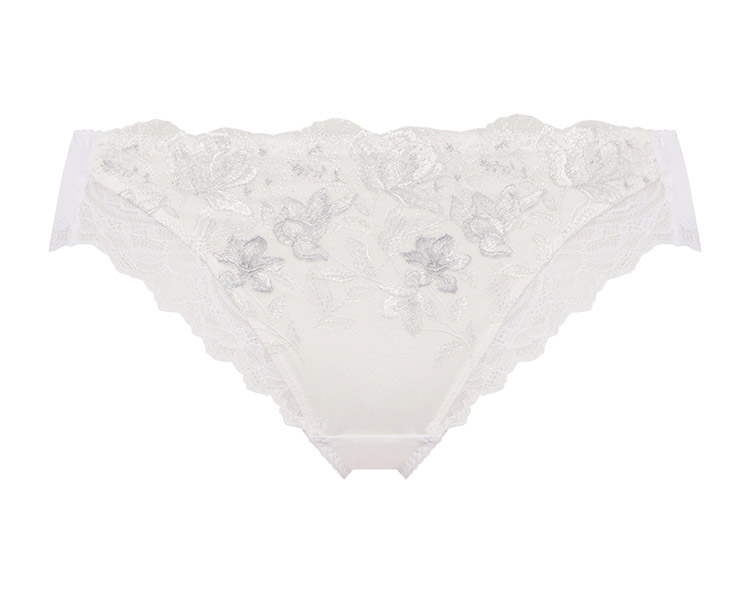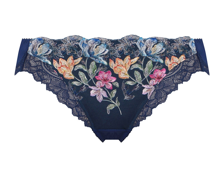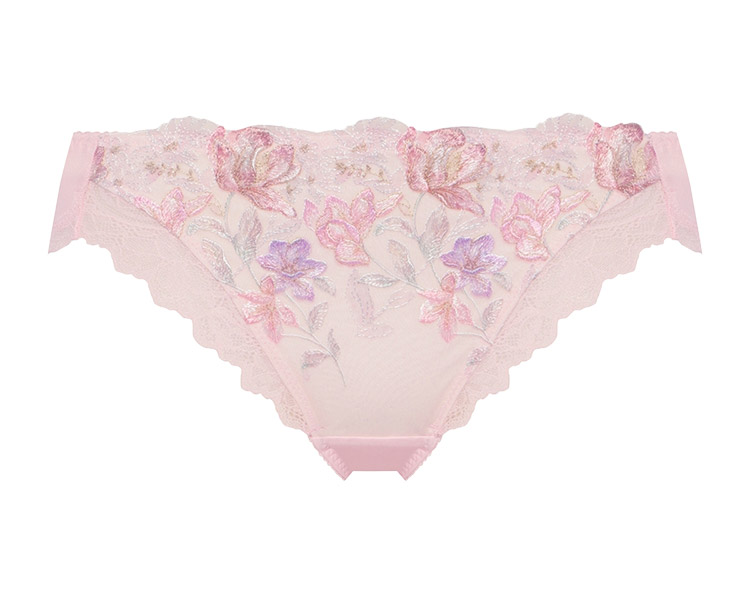ロマンチックなプリントエンブレースをフロントにあしらい、脚口にストレッチレースを使用したプレミアム感あふれる華やかなデザインです。