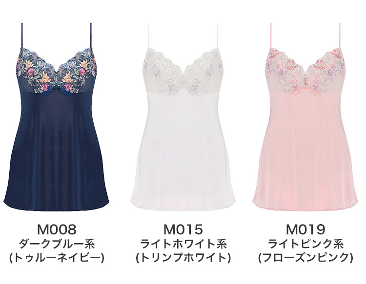 M008 ダークブルー系(トゥルーネイビー)、M015 ライトホワイト系(トリンプホワイト)、M019 ライトピンク系(フローズンピンク)