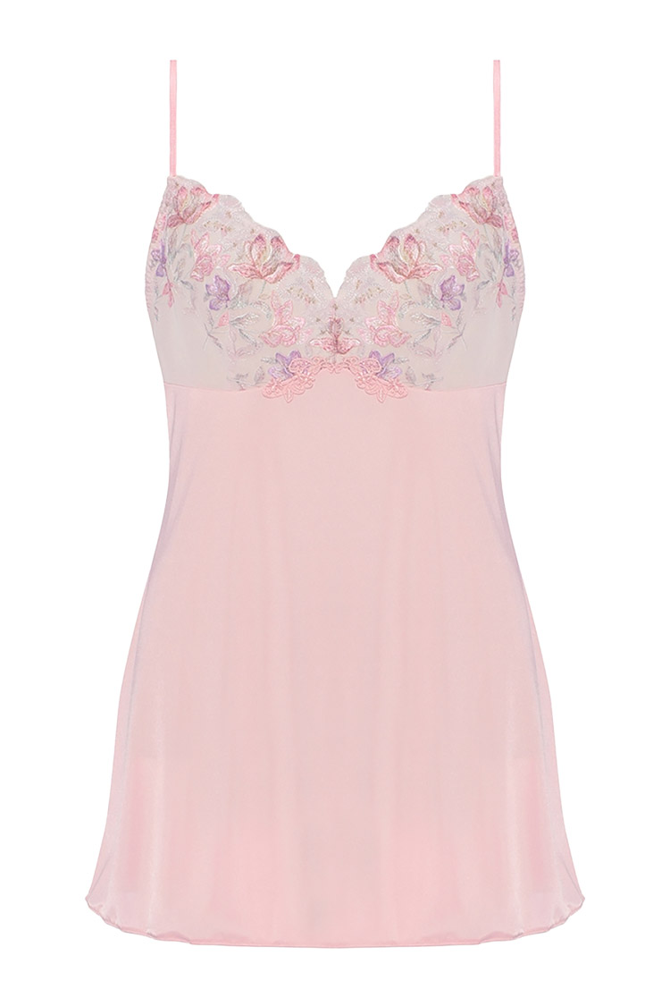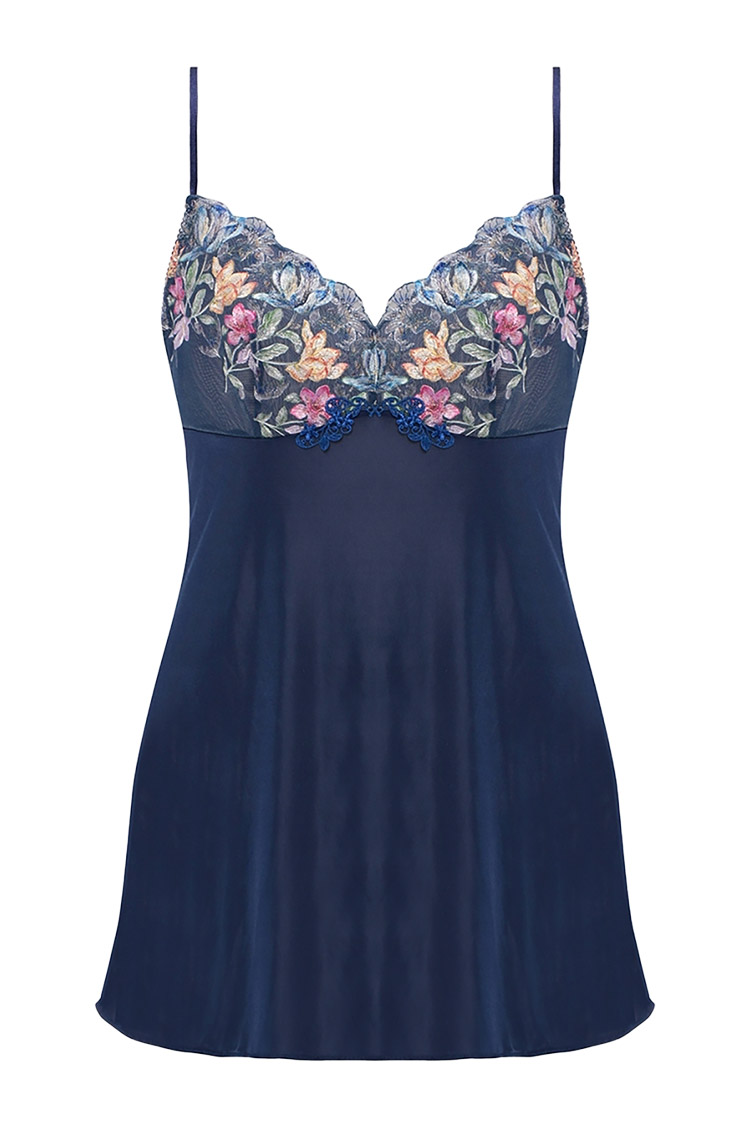 ロマンチックなプリントエンブレースをバスト部分にあしらい、フロント中央にモチーフ、背中にストレッチレースを使用したプレミアム感あふれる華やかなデザインです。