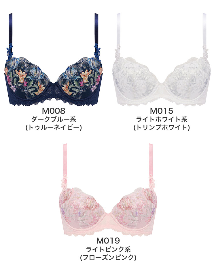 M008 ダークブルー系(トゥルーネイビー)、M015 ライトホワイト系(トリンプホワイト)、M019 ライトピンク系(フローズンピンク)