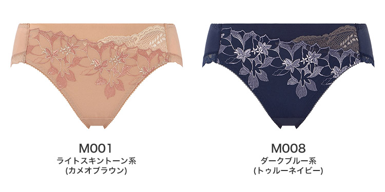 M001 ライトスキントーン系(カメオブラウン)、M008 ダークブルー系(トゥルーネイビー)