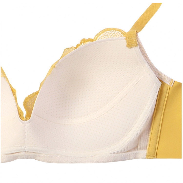 高いパターンなのでバストを寄せてサポートするのでノンワイヤーでも安定感のある着けごこちです。