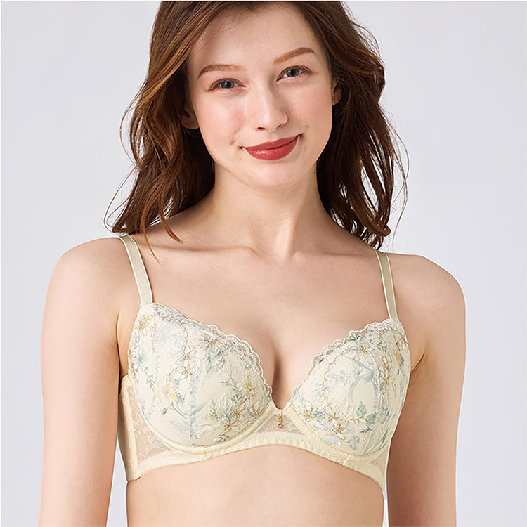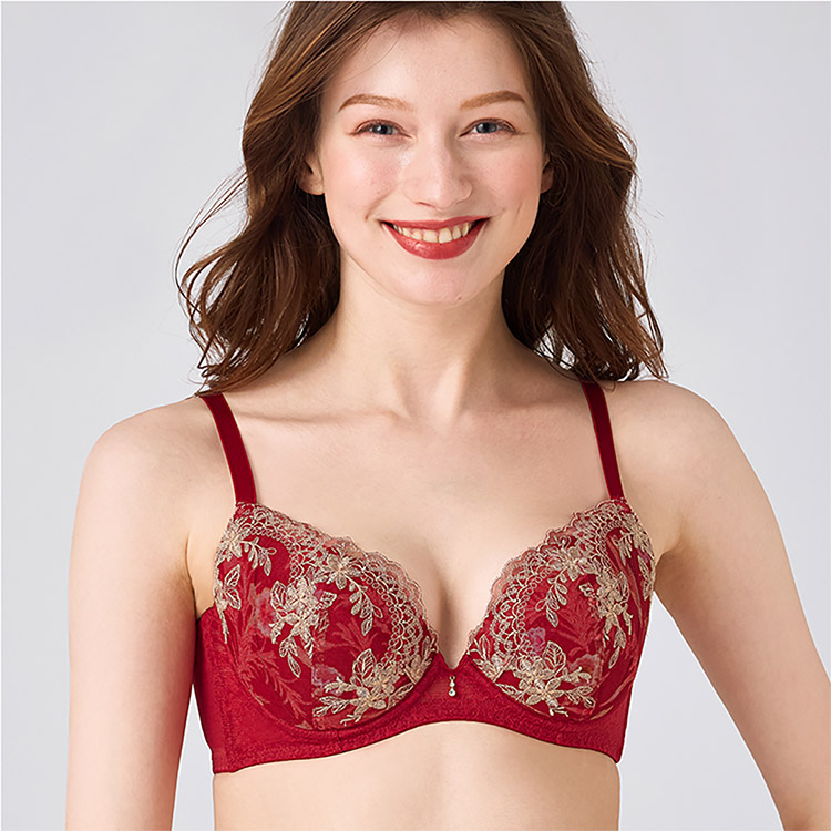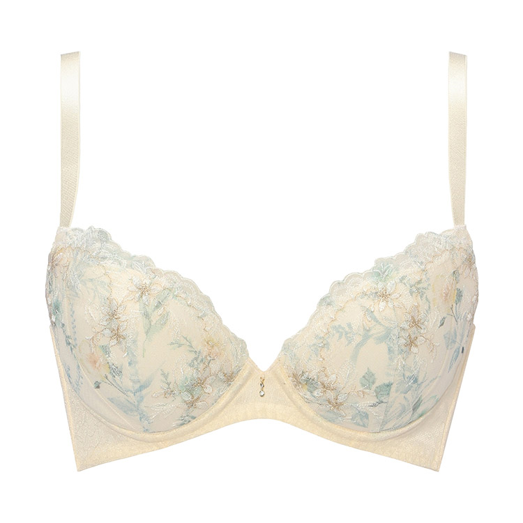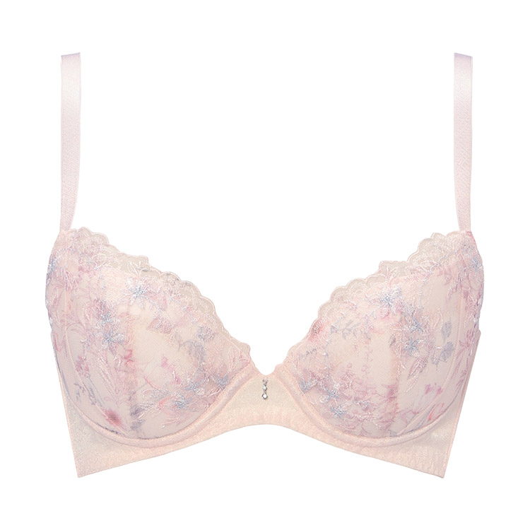 ブラジャーの前中心にあたるワイヤーの先端を薄くフラットにし外側に軽く反らしている“NEWエンジェルワイヤー”を使用しているので、前中心のワイヤーのくいこみ感を軽減し、痛くなりにくいです。