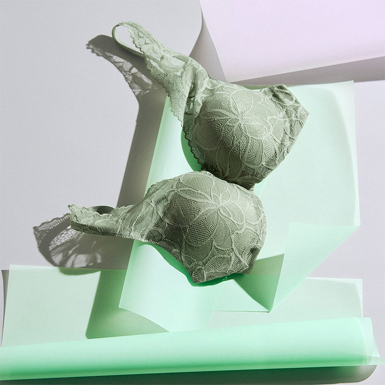 肌に溶け込むようになめらかにフィットし、アウターにも響きにくく、軽さが魅力です。モダンでフラットなストレッチレースをストラップまでつなげたブラレットデザインの”秘めわざ”です。