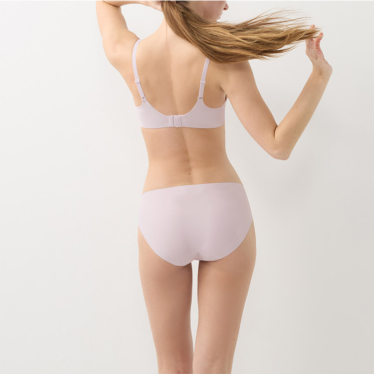 カップ下に厚みのあるモールドカップは自然にボリュームアップしつつ、カップ上部は薄いので肌になじみフィットします。