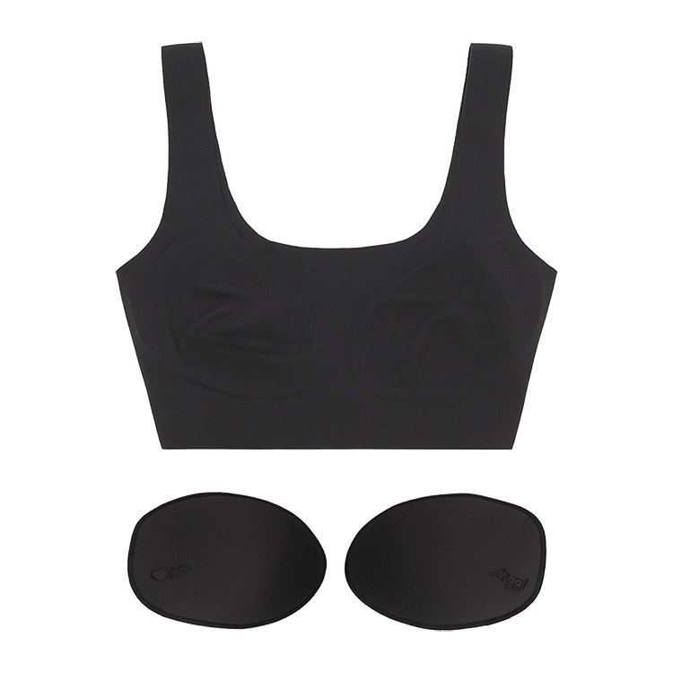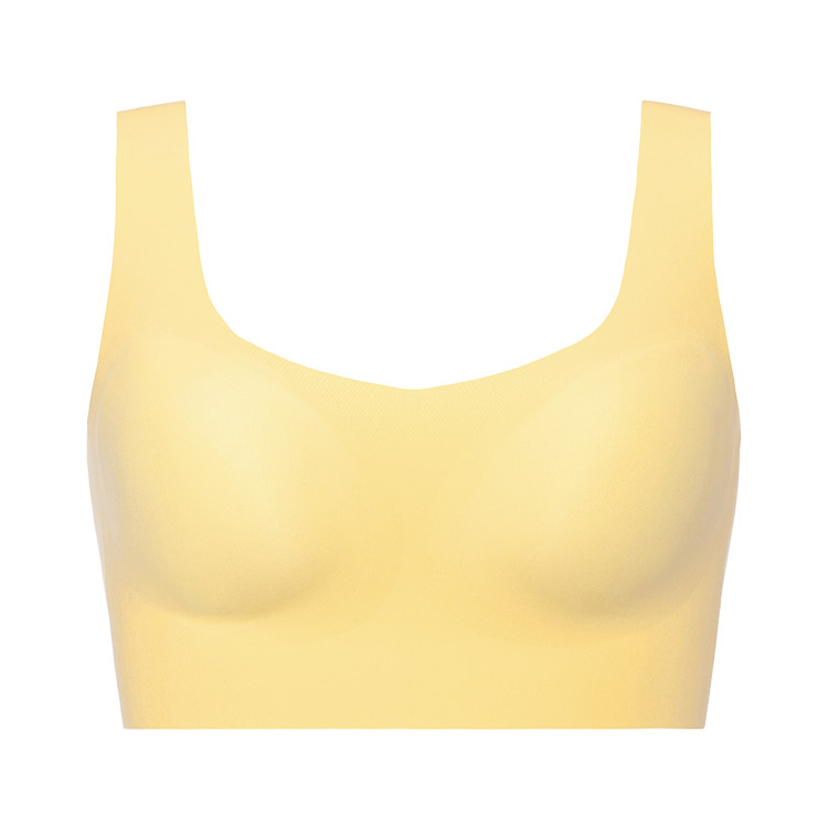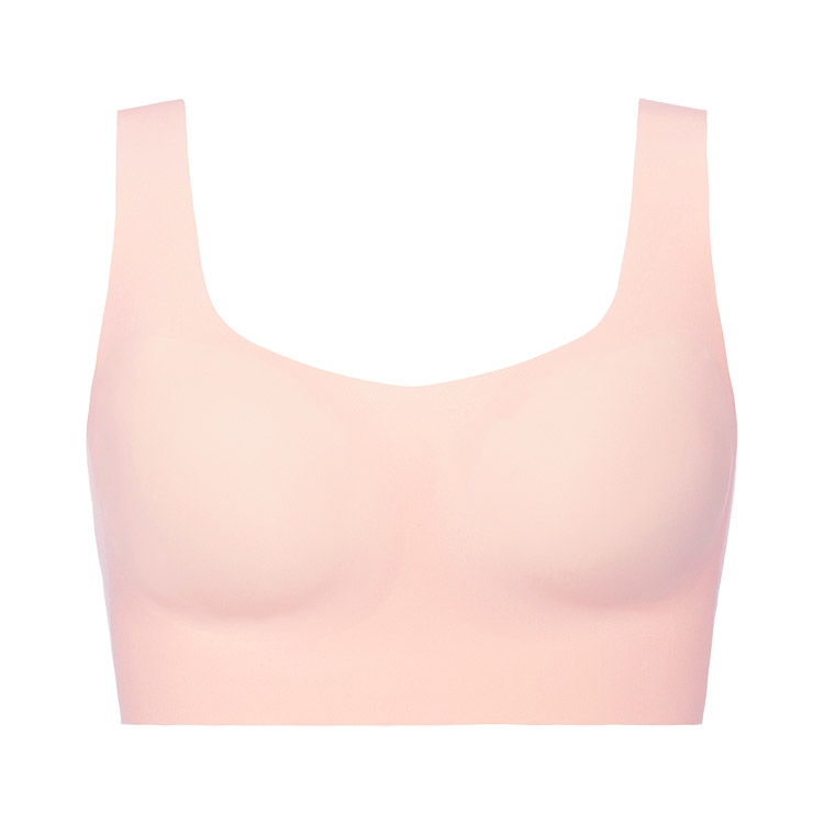 接着技術を使用した無縫製のハーフトップブラ。