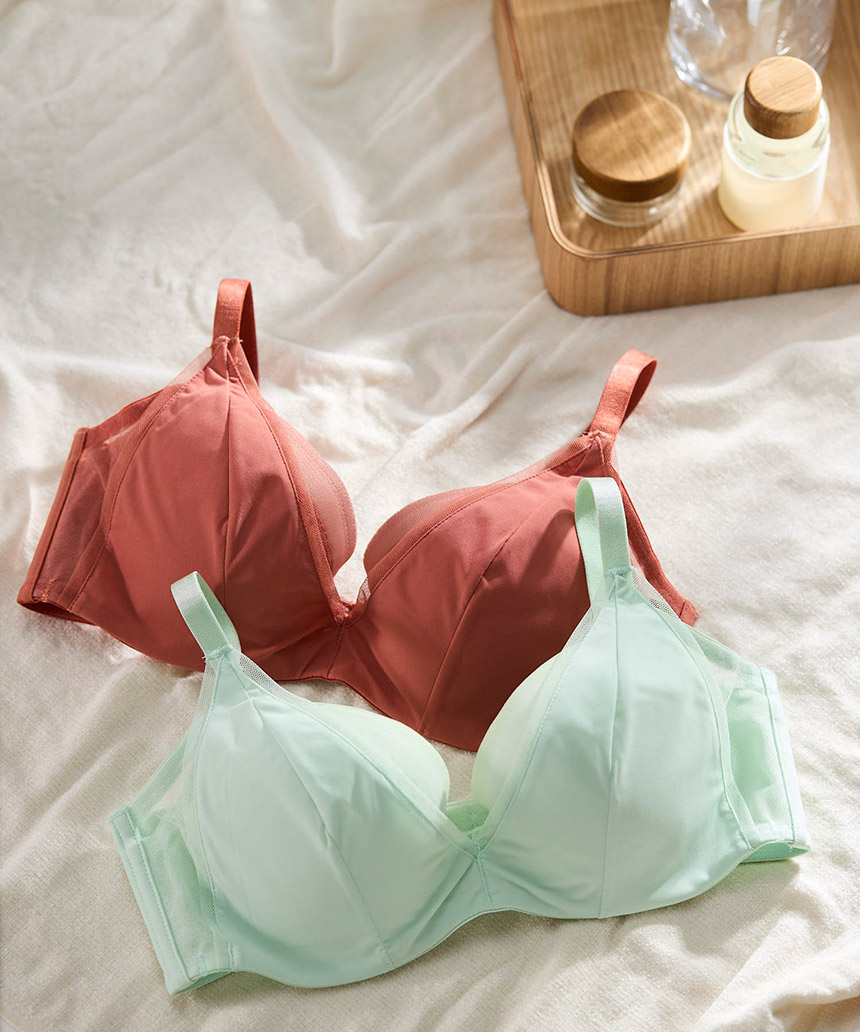 表生地の下に内蔵されたカップ脇布で、安定感のあるつけごこち。