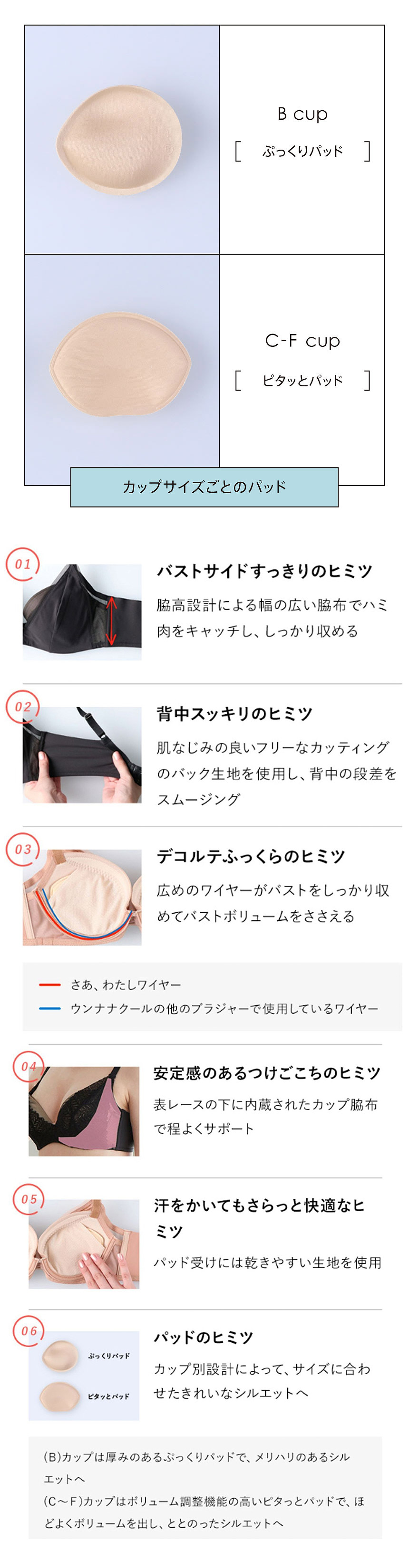 *C~Gカップはボリューム調整機能の高いピタっとパッドで、ほどよくボリュームを出し、ととのったシルエットへ