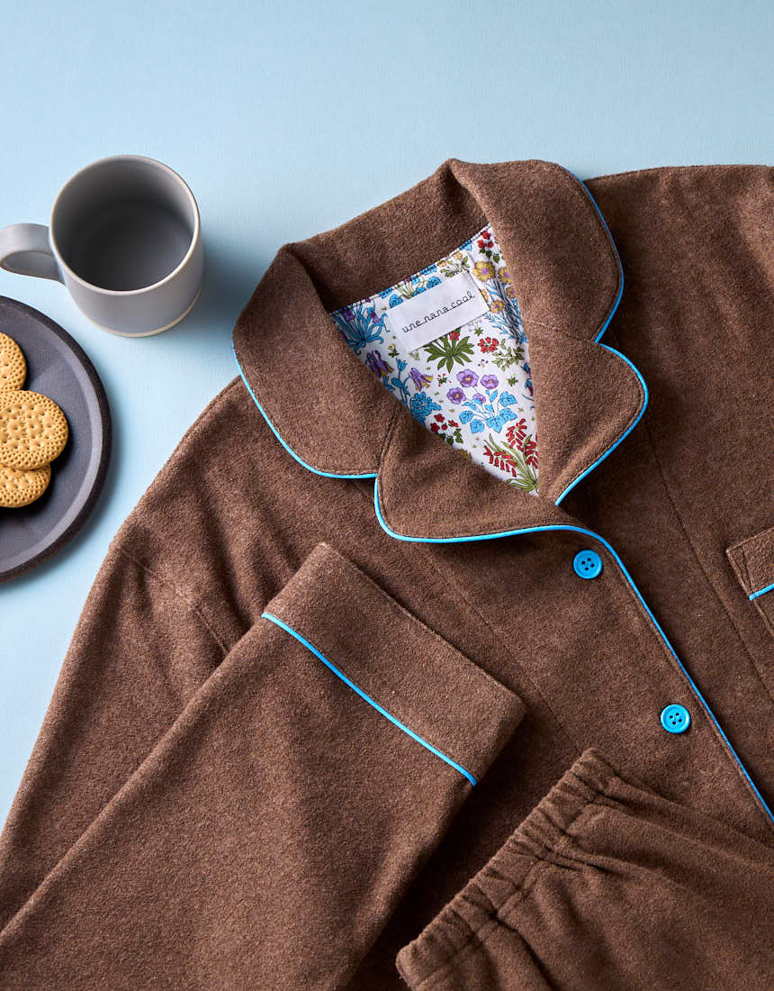 生地に限りがあるため、各カラーともに数量限定でのご用意となりますが、少量ずつ異なるテキスタイルを活用することで、バリエーションが豊富なパジャマがそろいました。
