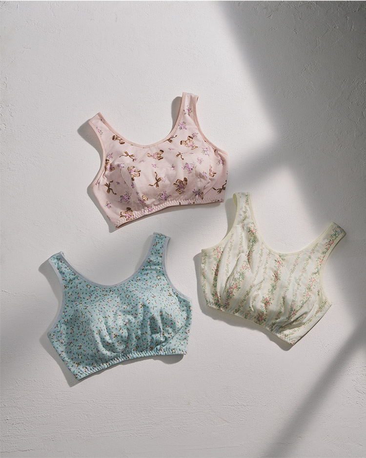 「寝ている間のバストが気になる」「苦しいのはイヤだけど、夜もちゃんとバストケアしたい」という方におすすめです。本体素材はしっとりなめらかな質感で、睡眠中のバストにやさしいラクなつけごこち。シンプルな無地タイプから華やかなプリント柄まで、選べるデザインバリエーションも魅力です。